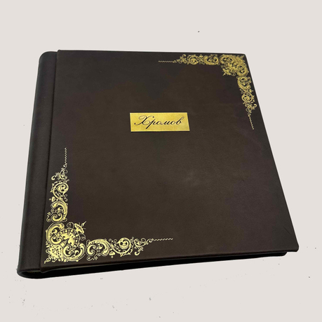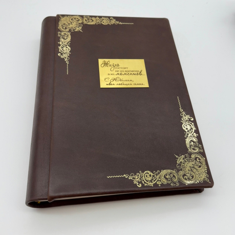 Второй этап — монтаж готовой шильды на обложку альбома. Мы фиксируем шильду с гравировкой с помощью специального клея и помещаем её под пресс для гарантии надёжности. Выберите индивидуальный подход к вашему фотоальбому с нашей уникальной шильдой!